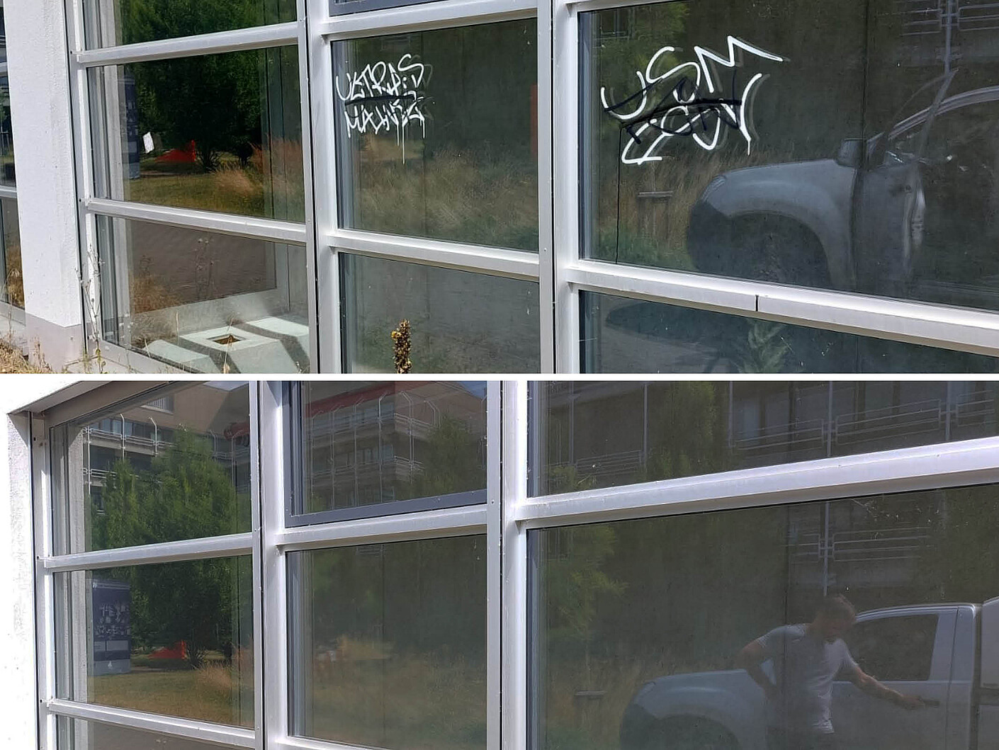Wir hatten das Vergnügen, für die Johannes Gutenberg-Universität Mainz umfangreiche Graffitientfernungsarbeiten durchzuführen. Dabei stellten uns die verschiedenen Untergründe – insbesondere Cortenstahl, Sichtbeton, Klinker, Glas und Sandstein – vor anspruchsvolle Herausforderungen, die wir mit fachgerechten Methoden und größter Sorgfalt meisterten.