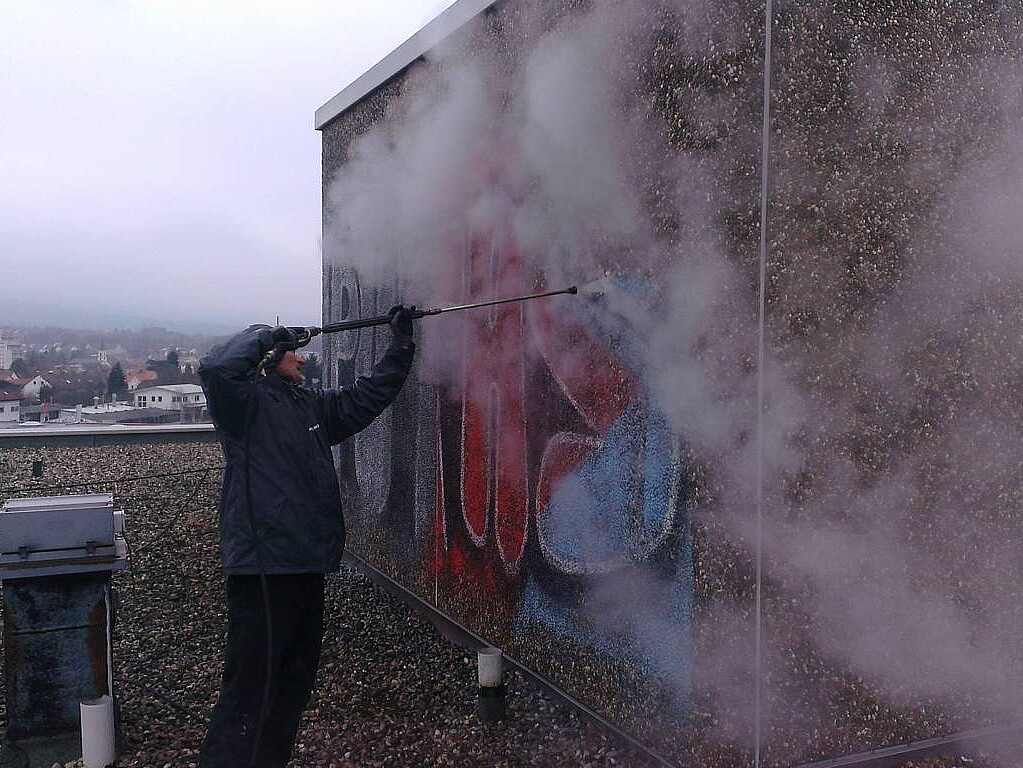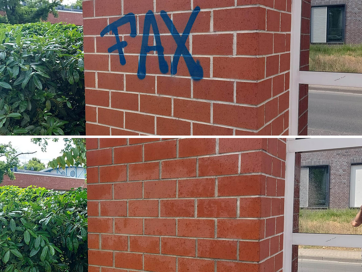 Gerade die Graffitientfernung von Cortenstahl erwies sich als nicht alltägliche Aufgabe, da dieses Material aufgrund seiner natürlichen Rostpatina empfindlich auf konventionelle Reinigungsmethoden reagiert. Unsere Expertise ermöglichte es, auch hier optimale Ergebnisse zu erzielen, ohne die Optik des Stahls zu beeinträchtigen.